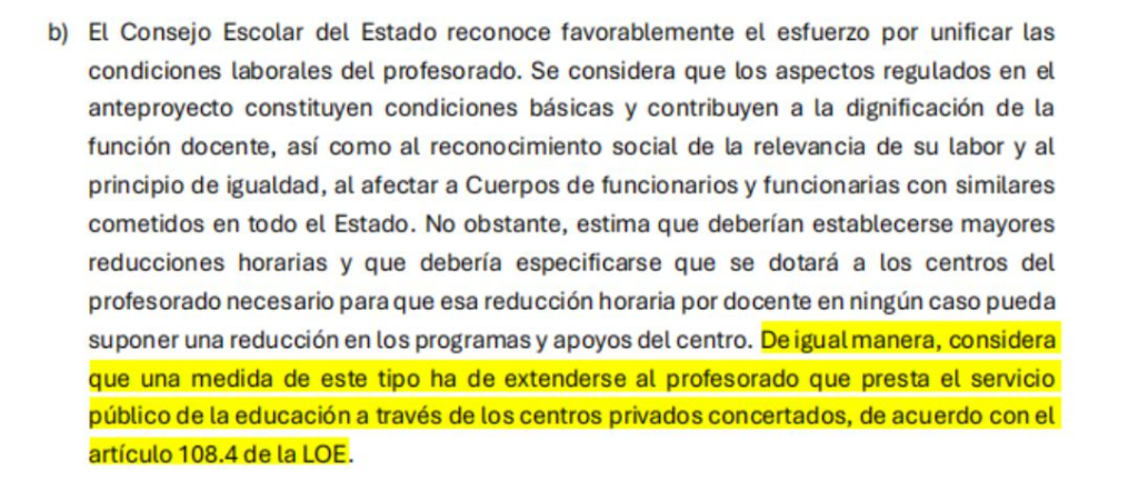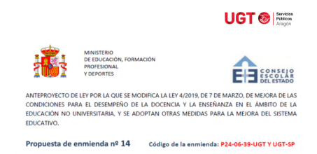 Además, UGT presentó en el pleno una enmienda con el objetivo de garantizar de forma expresa que la reducción de la jornada lectiva se aplique en igualdad de condiciones tanto al profesorado de la enseñanza pública como al de los centros concertados, asegurando así un trato equitativo para las dos redes que prestan el servicio público educativo.